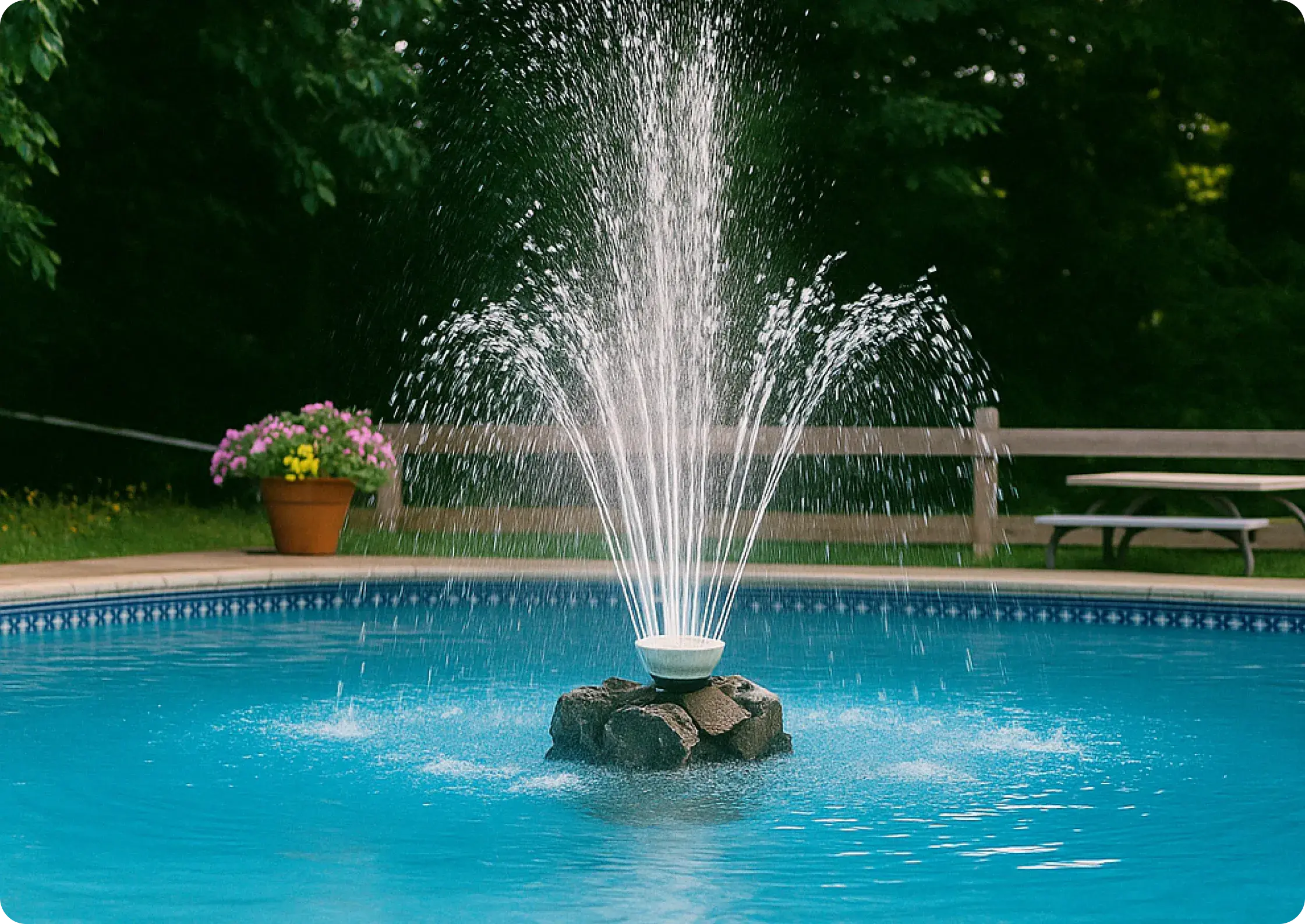 Fountains encourage better water circulation, helping distribute chemicals and reduce stagnant areas in the pool.