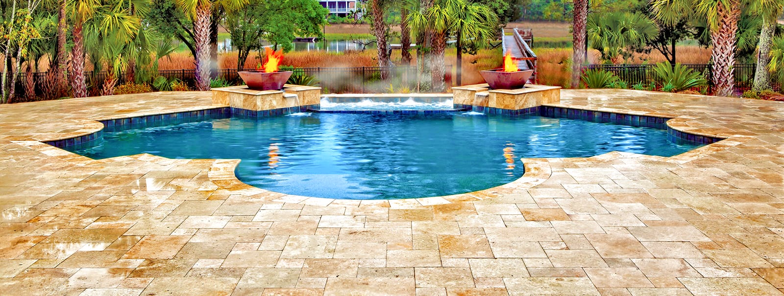 Water fountains help regulate the pool’s temperature, keeping it cooler during Florida’s hot summer months.